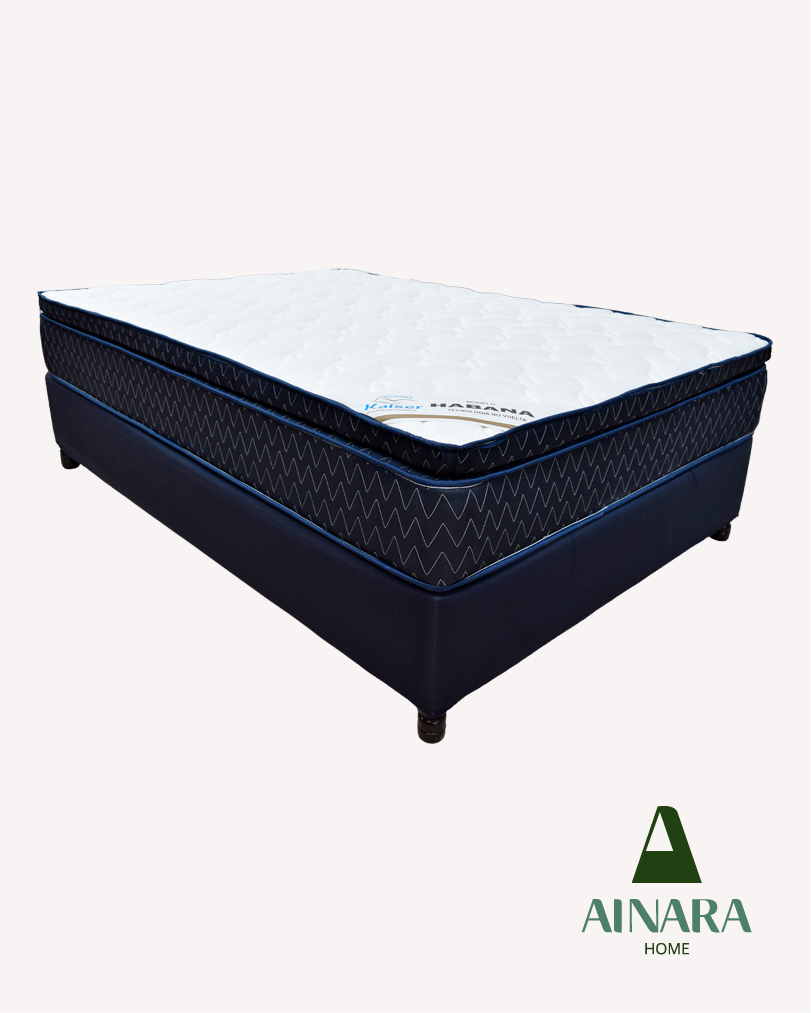 Unidad de 432 resortes de alta densidad tipo bonell bicónico con doble templado que garantiza su resistencia y durabilidad, aislantes acojinamientos de fibras sintéticas, colchoneta de aglutinado 5cm, tecnología no vuelta, capitonado en tela stretch antideslizante de fibras largas tacto algodón.